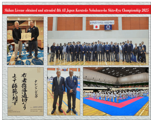 Head Instructor of JKNSK India Naresh Sharma successfully obtained the license of ‘SHIHAN’ during a examination conducted by Soke Kuniaki Nobukawa JKNSK Honbu Dojo in Japan.